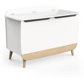Coffre a jouets en MDF de 15mm - DEMEYERE - STYLE SCANDINAVE - ECO-FRIENDLY : peinture laquée sans métaux lourds - COLORIS : BLANC MAT/CHENE KRONBERG - Pieds en bois d'Hévéa massif - Dim. du coffre monté : 82,4 x 39,1 x 58,9 cm - Conforme a la norme NF D60-300-12019 - Avec frein de contrôle