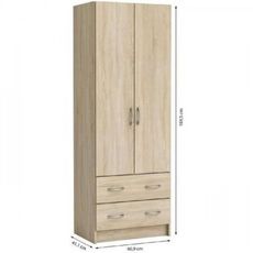 Armoire de chambre adulte DEMEYERE en panneaux de particules revetus de papier décor chene brossé. Comporte 2 portes avec 3 rayons amovibles et réglables sur 5 niveaux, 2 tiroirs montés sur coulisses métal. Dimensions L 61 x P 41 x H 170 cm. Fabrication française.