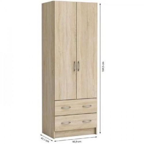 DEMEYERE Armoire - Décor chene brossé - 2 portes et 2 tiroirs - Classique - Chambre - L 61 cm - DUAL