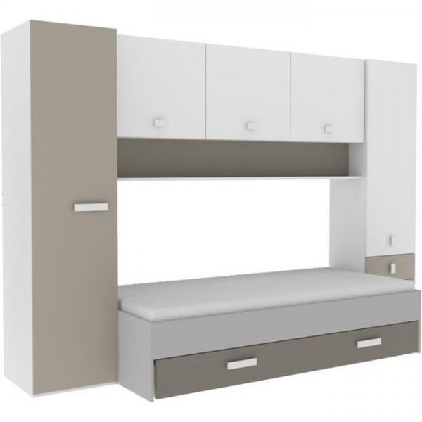 DEMEYERE Lit gigogne enfant avec multiples rangements - Décor blanc/argile - 90 x200 cm - TIDY