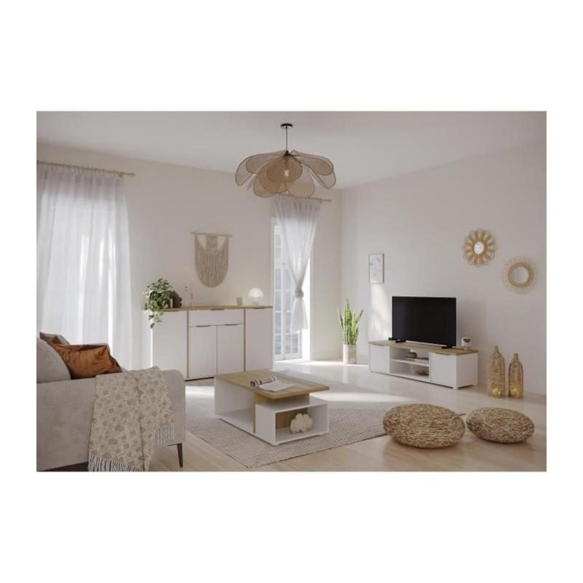 - Composition complète 3 pièces (table basse + banc TV + enfilade)