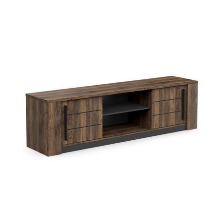 Ce meuble TV s'intègre parfaitement dans les intérieurs contemporains grâce à son coloris saloon oak/noir polyvalent. Son profil bas (51,8 cm de hauteur) préserve la visibilité de l'écran tout en créant une ligne épurée dans votre espace de vie.