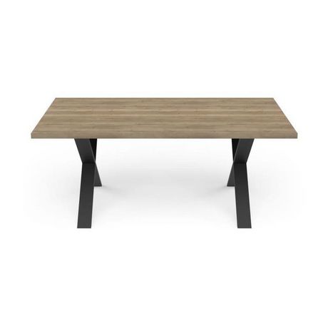 La table STOUT rectangulaire allie esthétique moderne et durabilité avec son plateau en mélamine Halifax résistant aux rayures et ses pieds en X noir mat. Son format 180 x 90 cm accueille confortablement 6 convives, idéal pour les repas en famille ou entre amis.