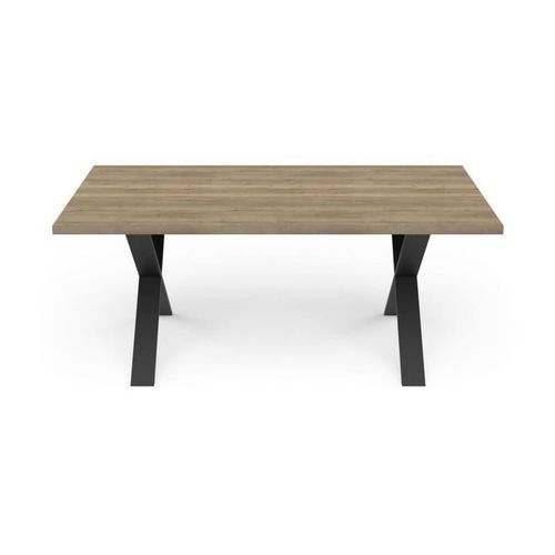 Table - STOUT - Rectangulaire - Décor mélamine halifax - Pied en X noir mat - 6 places - 180 x 90 cm - DEMEYERE