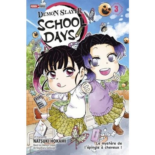 Bienvenue à l'école des pourfendeurs ! Dans cet établissement scolaire un peu spécial, chaque nouvelle journée est une occasion de s'amuser ! Qu'il s'agisse du nettoyage de la salle des profs ou de la traditionnelle bataille de citrouilles d'Halloween, personne n'a le temps de s'ennuyer ! Et quand Kanao égare sa précieuse barrette à cheveux, c'est toute l'école qui se met en quête du précieux objet ! Après avoir conquis tant de lecteurs avec Demon Slayer, la série de Koyoharu Gotouge se tourne maintenant vers l'humour. Demon Slayer School Days, dessiné par Natsuki Hokami, est le manga dérivé du court anime parodique du même nom. Cette fois, il n'est pas question pour nos pourfendeurs de se lancer dans des confrontations grandioses face à d'impressionnants démons. Tanjirô et ses amis rejoignent les bancs de l'école en tant qu'étudiants. Une nouvelle facette où l'action laisse place aux fous rires. Un spin-off toujours en cours au Japon et qui devrait autant plaire aux fans de la licence qu'à ceux désirant une aventure particulièrement drôle.