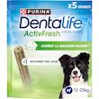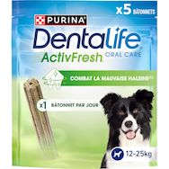 La bonne santé bucco-dentaire de votre chien est importante pour son bien-être. En donnant un savoureux bâtonnet PURINA DENTALIFE ACTIVFRESH une fois par jour, vous pouvez combattre la mauvaise haleine et soutenir la santé bucco-dentaire de votre chien, pour une vie heureuse et épanouie.La texture unique des bâtonnets PURINA DENTALIFE, tendre et alvéolée, est prouvée pour favoriser un nettoyage doux et efficace, même pour les dents les plus difficiles à atteindre. Le goût savoureux des bâtonnets à mâcher pour chien DENTALIFE contribuera à rendre la routine dentaire de votre chien agréable au quotidien !DENTALIFE ACTIVFRESH contient de la spiruline et du miel, qui sont scientifiquement prouvés pour neutraliser les bactéries responsables de la mauvaise haleine.Il est aussi scientifiquement prouvé que les bâtonnets à mâcher DENTALIFE réduisent la plaque dentaire et la formation du tartre, même sur les dents au fond de la mâchoire.Les bâtonnets à mâcher pour chien PURINA DENTALIFE sont scientifiquement prouvés pour être efficaces, indépendamment de la durée de mastication.