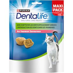 Une délicieuse friandise bucco-dentaire du quotidien qui aide à nettoyer les dents de votre chat facilement et efficacement grâce à sa texture scientifiquement conçue, alvéolée et croustillante.Scientifiquement prouvé pour réduire la formation du tartre.Texture alvéolée scientifiquement conçue pour un nettoyage efficace sur l'intégralité des dents, et même les dents les plus difficiles à atteindre.Avec du calcium et de la taurine, et sans colorants ajoutés Adoptez le réflexe bucco-dentaire au quotidien pour votre chat avec les friandises Dentalife Chat, le croustillant qui nettoie les dents!Franchissez le pas et nettoyez les dents de votre chat au quotidien avec les friandises Dentalife Chat.