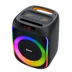Découvrez le haut-parleur portable Bluetooth Denver BPS-165, un appareil moderne et compact offrant une puissance maximale de 200 W. Il intègre des lumières LED qui réagissent à la musique pour une ambiance festive. Equipé d'une connectivité Bluetooth, ainsi que de ports USB et MicroSD, il permet pl