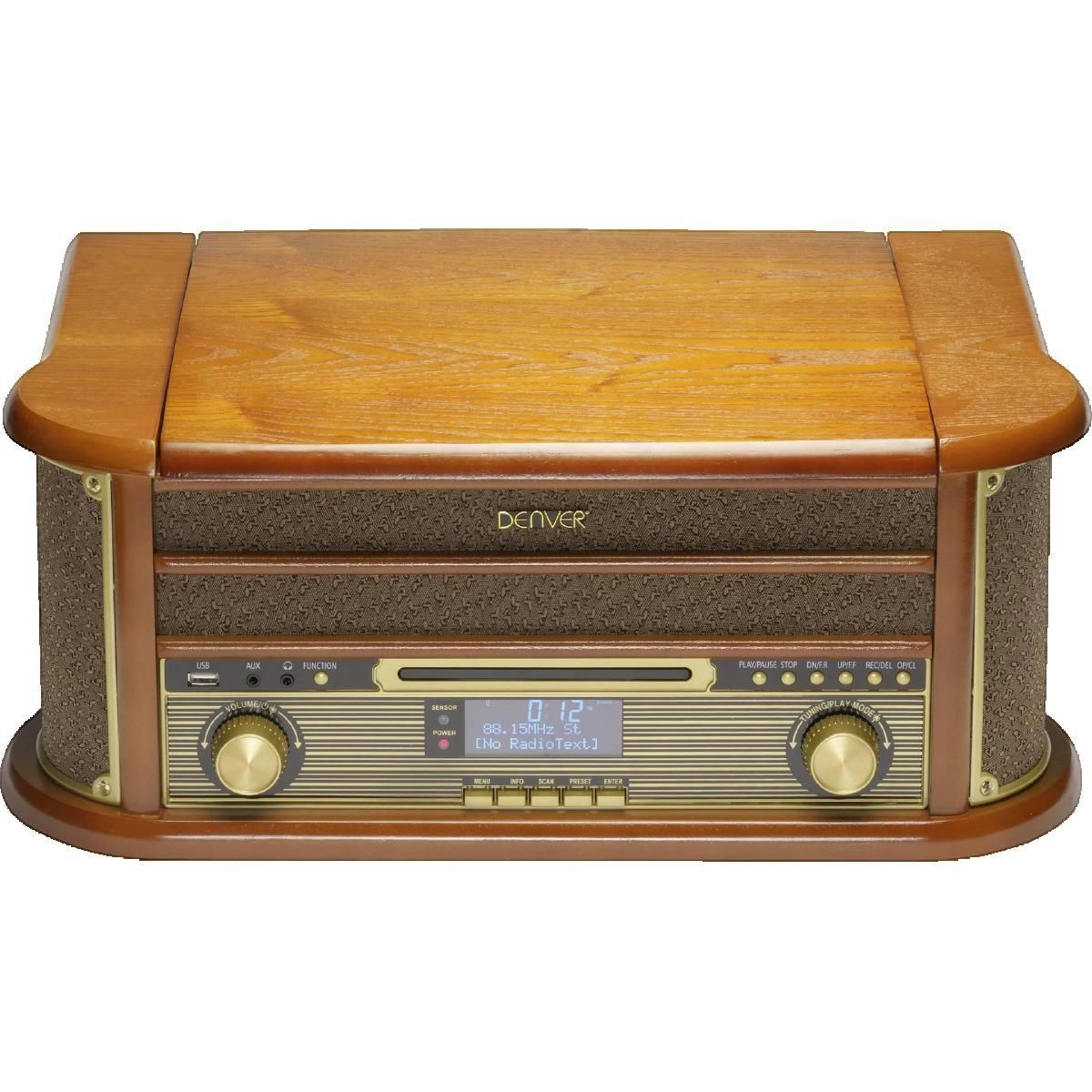 Platine vinyle Denver MRD-51 Système de musique rétro avec tourne-disque, DAB, cassette