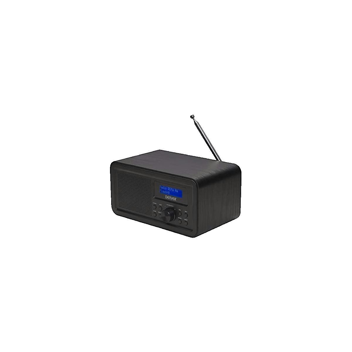 Découvrez la radio portable Denver DAB-30 de Denver Electronics, conçue pour offrir une expérience d'écoute optimale avec réception numerique DAB+ et FM. Dotée d'un élégant boîtier en bois noir, cette radio compacte est équipée d'un écran LCD rétroéclairé bleu pour une lecture claire. Sa puissance de sortie est de 1W RMS, et elle inclut des fonctions pratiques telles que l'horloge intégrée, l'alarme avec plusieurs modes de réveil (radio ou buzzer) et la fonction snooze. La Denver DAB-30 fonctionne sur secteur 230V ou sur piles (non incluses), offre une sortie casque stéréo et un contrôle de volume à 20 niveaux, idéale pour la musique et l'information en mobilité.