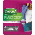 Les sous-vêtements Depend® COMFORT-PROTECT disposent du système Total Secure qui regroupe en une seule et même zone : des canaux super-absorbants pour une protection anti-fuites assurée même la nuit et des filtres éliminant les odeurs. Depend® COMFORT-PROTECT vous offre tout le confort nécessaire grâce à sa matière ultra-douce, légère et respirante. Depend COMFORT-PROTECT Culottes Taille L (8 gouttes) x 9 – Femme