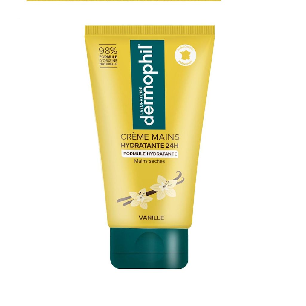 Notre Crème Mains Formule Hydratante 24h au parfum gourmand de Vanille hydrate et protège vos mains. Nous avons sélectionné des ingrédients qui réparent, nourrissent et soulagent immédiatement votre peau._x000D_
