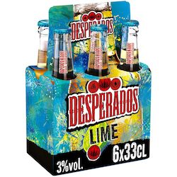 Desperados® Lime est une bière aromatisée à un spiritueux à base d'agave, citron vert et cactus. Desperados® Lime offre des saveurs fraîches de citron vert, relevées de notes épicées.