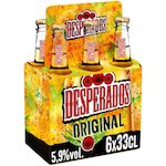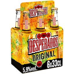 Pack de 6 bouteilles de 33cl. Desperados® Original : un goût unique, accessible, avec de subtiles notes de citron, et quelques touches épicées. Bouteilles 100% recyclables.