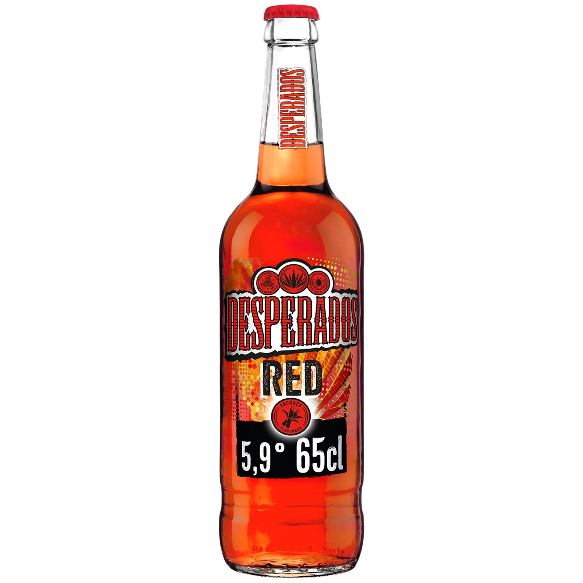 Bouteille de 65cl Desperados ® Red : Bière aromatisée au spiritueux Cachaça, Fruits rouges, Guarana, pour une consommation idéale en soirée.