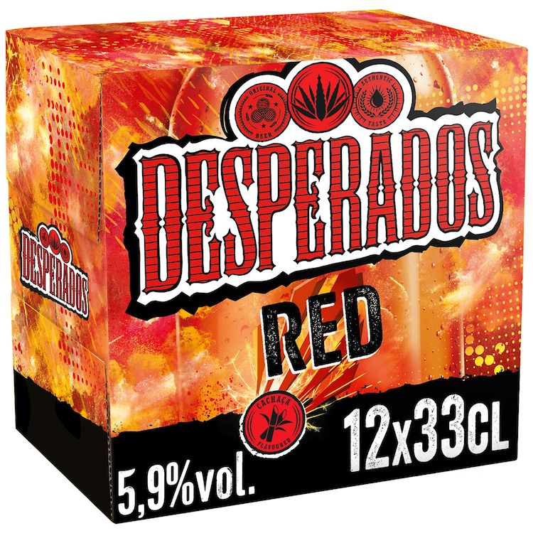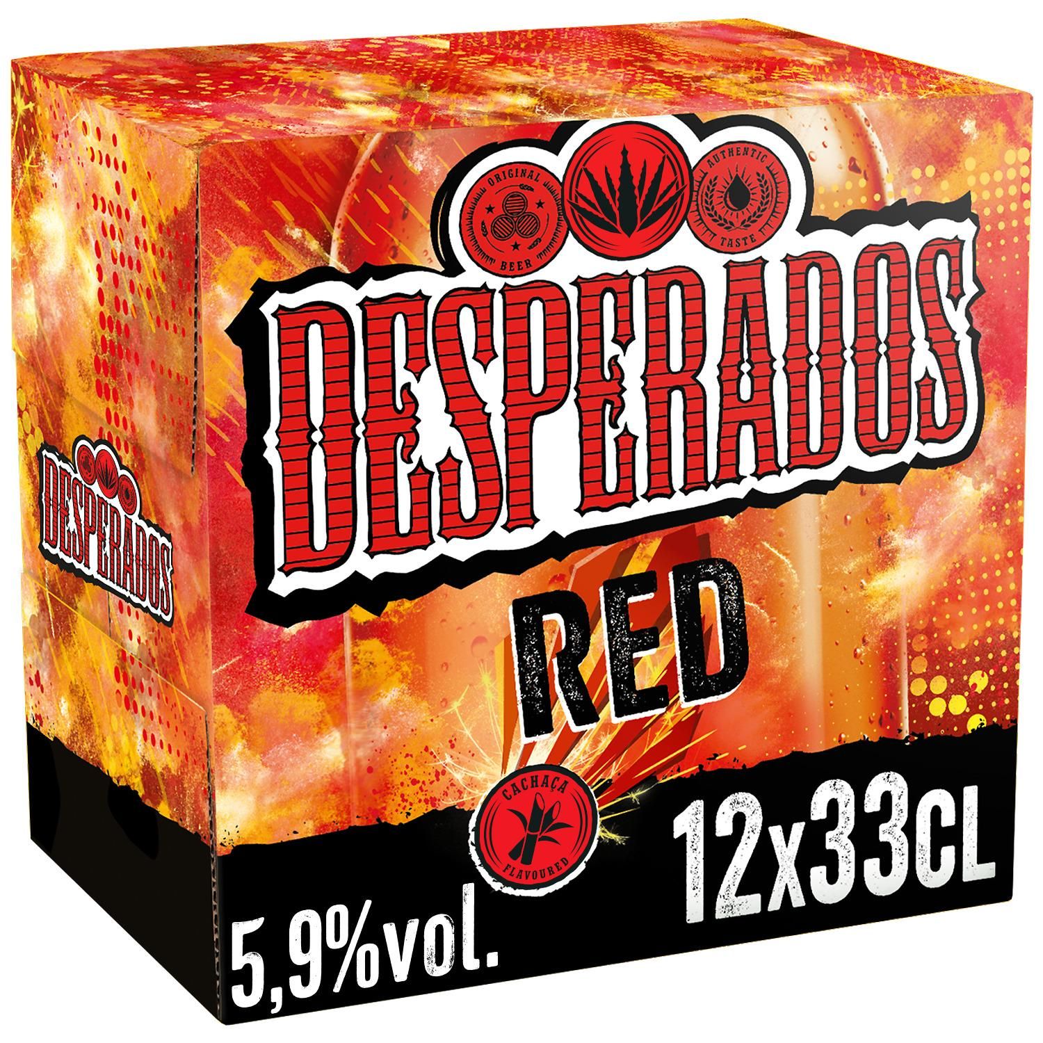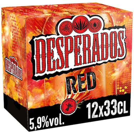 Pack de 12 bouteilles de 33 cl. Desperados ® Red : Bière aromatisée au spiritueux Cachaça, Fruits rouges, Guarana, pour une consommation idéale en soirée.