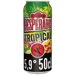 Desperados® Tropical est la nouvelle bière de la gamme Desperados® qui associe pour la première fois la bière, les saveurs du rhum et celles douces et fruitées du fruit de la passion et du citron vert.