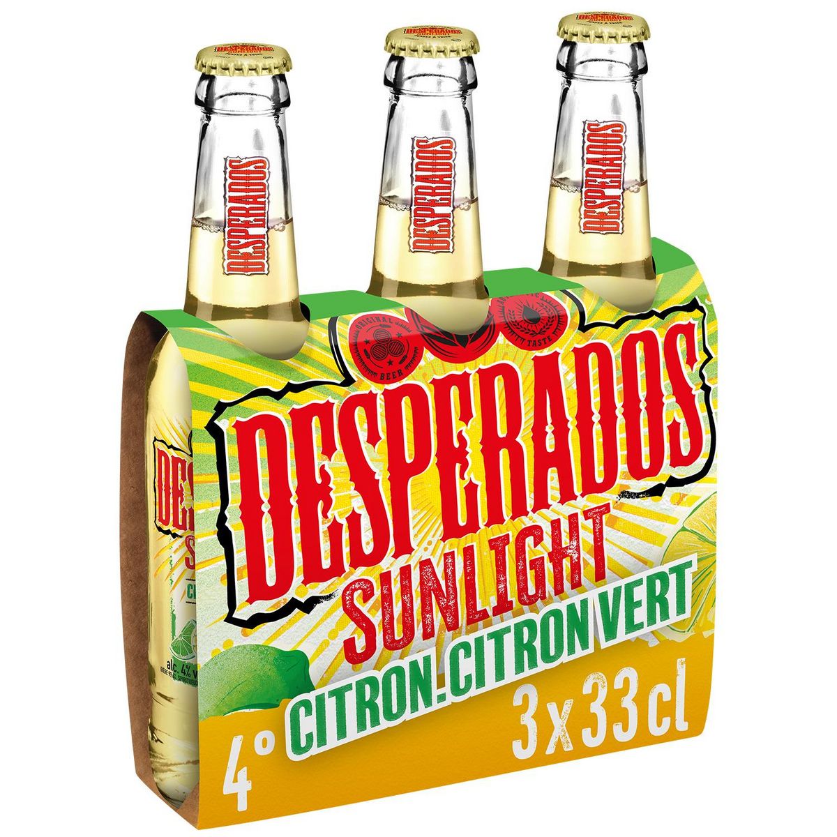 Desperados® ne fait rien comme tout le monde. Avec son nom original et sa saveur inimitable, cette bière aromatisée bouscule les codes de la bière traditionnelle. Desperados Sunlight, cette nouvelle gamme au goût léger et fruité, à 4% d'alcool en volume provient de l'association d'une bière blonde - pur malt d'orge d'origine française - aromatisée aux citron & citron vert et avec une touche de spiritueux à base d'agave. À déguster bien fraîche, à 4°C, tout au long de l'année, dans l'après-midi ou en début de soirée ensoleillée. Contrairement aux idées reçues, Desperados® a été créée en 1995 en Alsace.