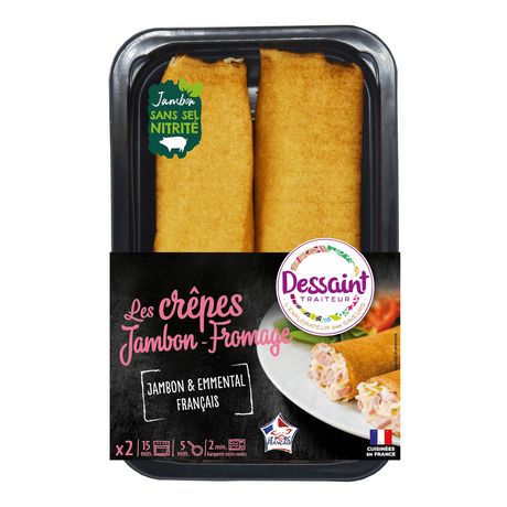 Crêpes garnies de sauce à l'emmental et au jambon cuit supérieurVPF, aromatisées emmental