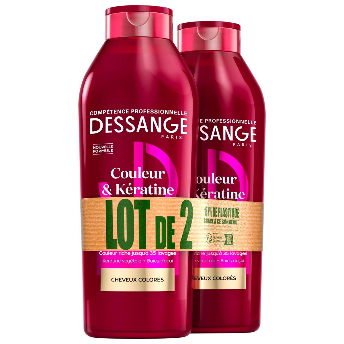Inspiré des salons, le protocole Couleur & Kératine protège l'éclat de vos cheveux colorés dans le temps. Sa nouvelle formule enrichie en complexe de soin de kératine végétale et baies d'açaï, nourrit et répare la fibre pour révéler une couleur exceptionnelle. Votre couleur est riche et préservée jusqu'à 35 lavages*. * Test instrumental après application du shampooing Couleur & Kératine + masque Couleur & Kératine. Votre couleur est riche et préservée jusqu'à 35 lavages*. * Test instrumental après application du shampooing Couleur & Kératine + masque Couleur & Kératine.