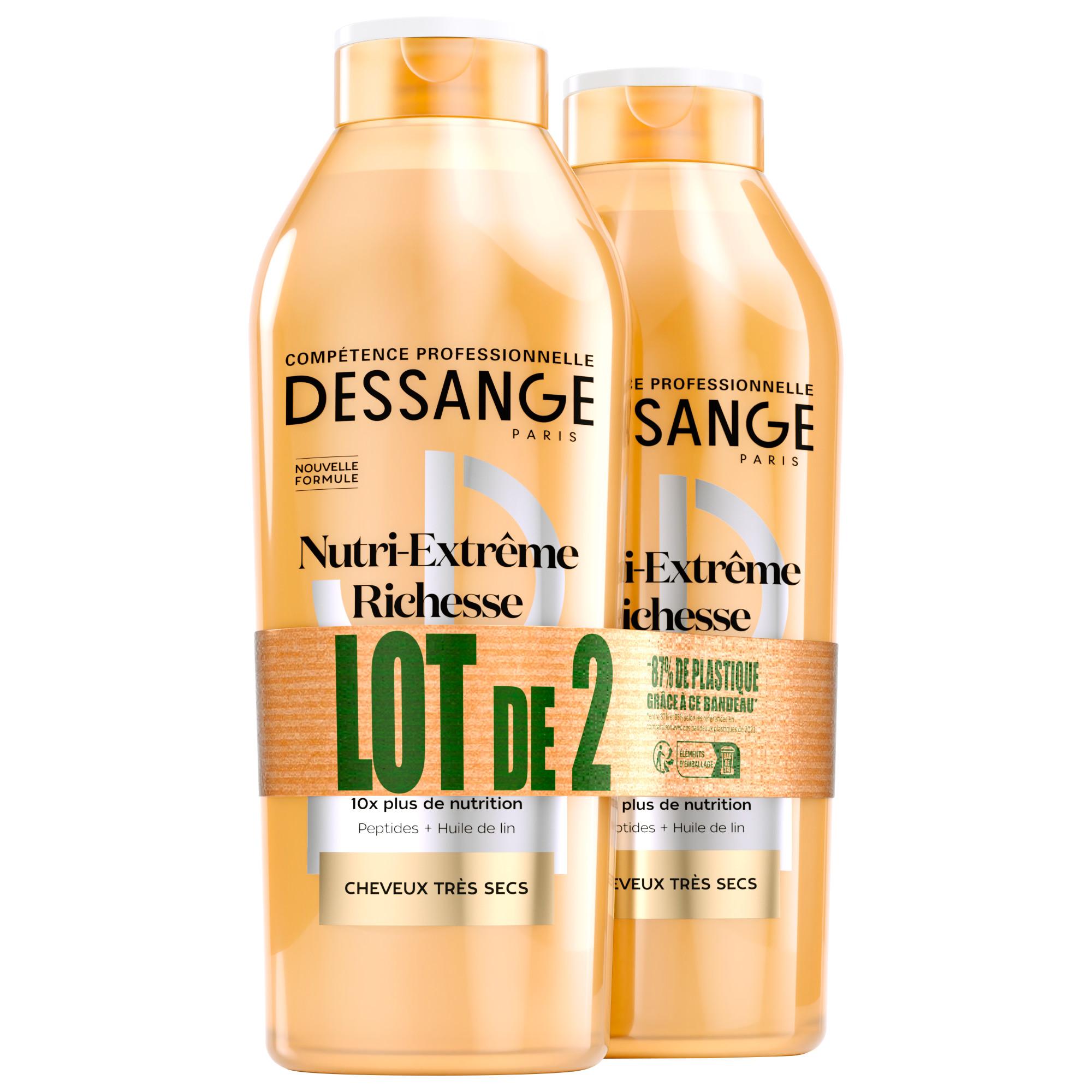 Vos cheveux très secs sont souvent rêches, ternes et très difficiles à coiffer. Seul un grand coiffeur connaît le secret pour les nourrir durablement et leur redonner force, discipline et éclat. Inspiré des salons, le protocole Nutri-Extrême Richesse offre un véritable concentré de nutrition à vos cheveux très secs. Sa nouvelle formule enrichie en complexe de soin de peptides et huile de lin, imprègne généreusement la fibre pour la nourrir intensément. Vos cheveux sont 10 fois plus nourris*, éclatants et faciles à coiffer. * Test instrumental après application du shampooing Nutri-Extrême Richesse + masque Nutri-Extrême Richesse + soin Nutri-Extrême Richesse. Vos cheveux sont 10 fois plus nourris*, éclatants et faciles à coiffer. *Test instrumental après application du shampooing + masque + soin.
