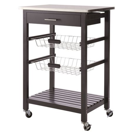 Finition soignée : pieds et traverses en pin, panneaux en MDF, paniers en métal chromé,