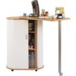 Assez facile à monter mais lourd. Le plan est haut et le meuble principal n’est pas sur roulettes. Il est joli. On verra à l’usage