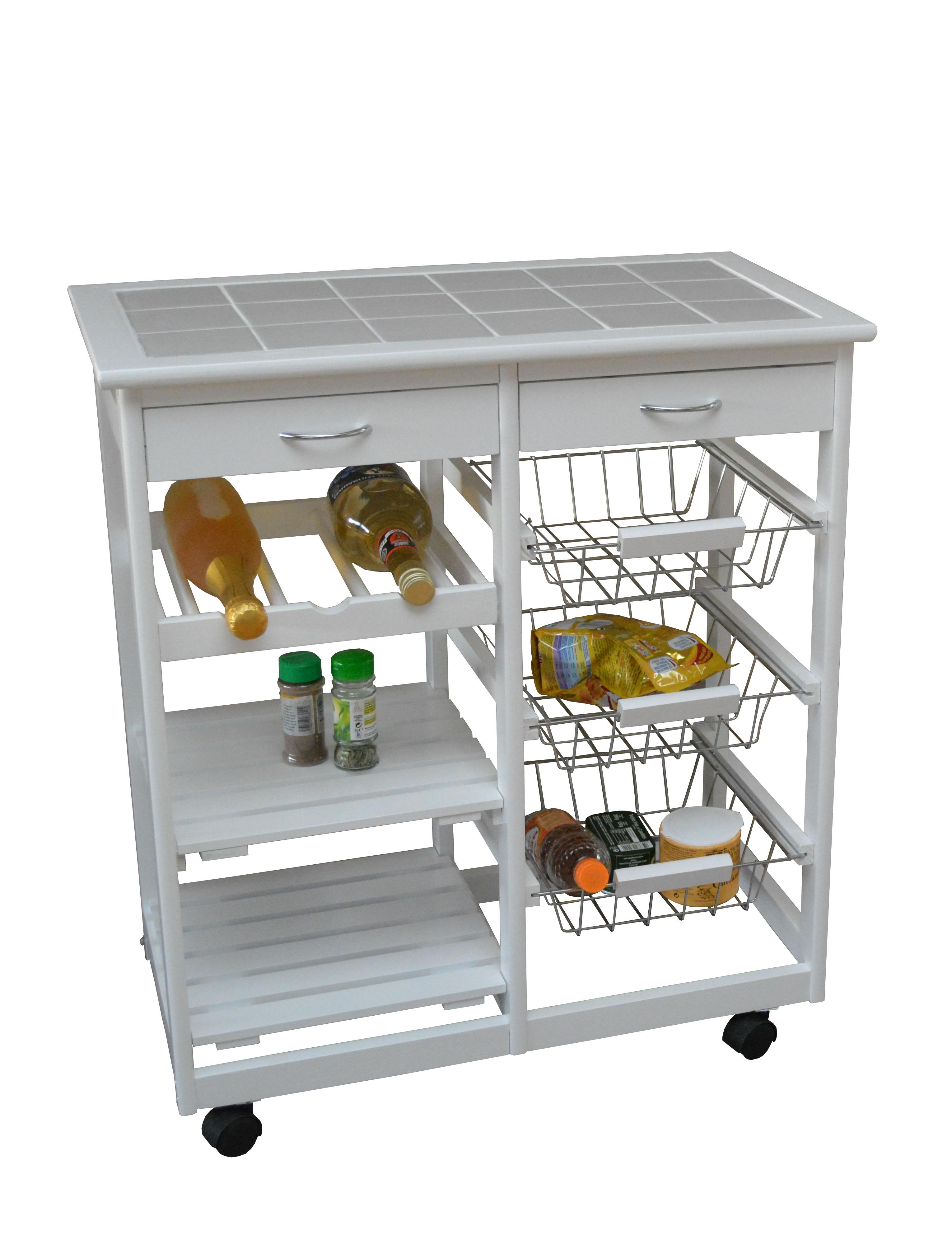 Desserte de cuisine en pin massif sur roulettes CARILLON