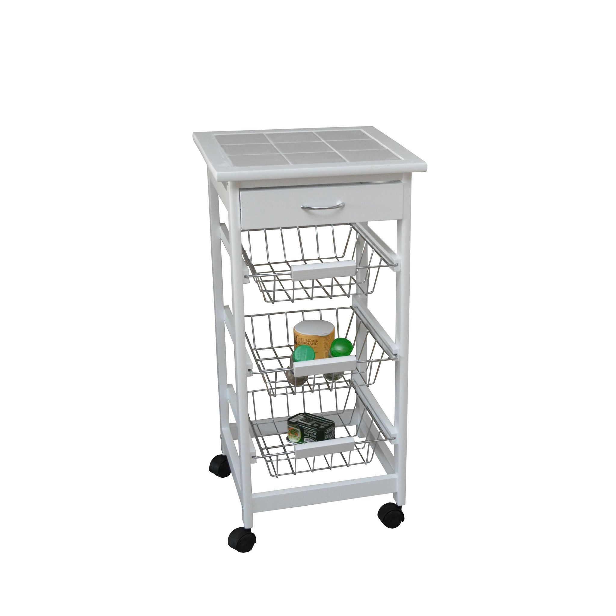 Petit meuble de complément, structure en MDF. 3 étagères, 1 tiroir. Top avec céramique. A monter soi-même