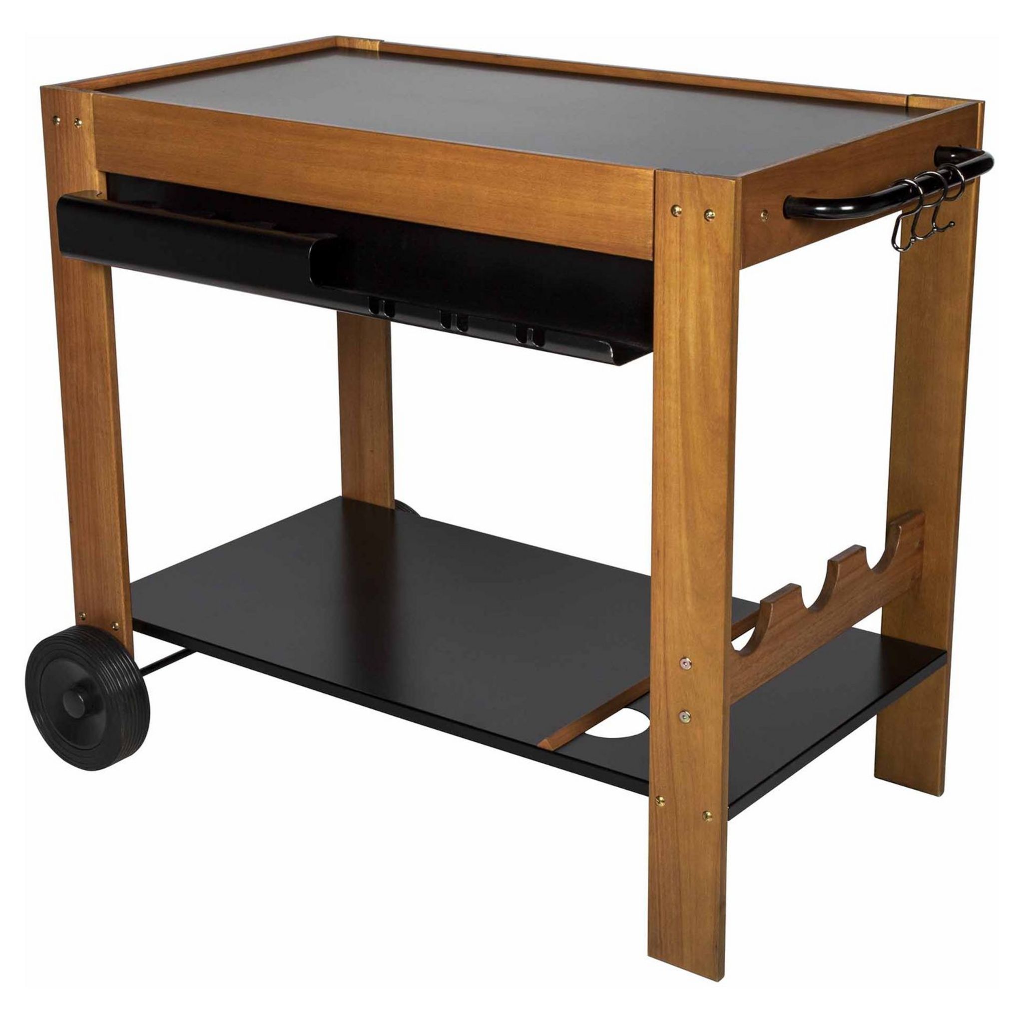 La desserte PERLA est votre allié des beaux jours ! La desserte PERLA est une desserte sur chariot en bois cérusé gris pour plus d'élégance. Son plateau de 87x47cm permet de poser sa plancha ou des plats lors de la préparation des barbecues. Facile à déplacer et à nettoyer, cette desserte fera des envieux !