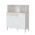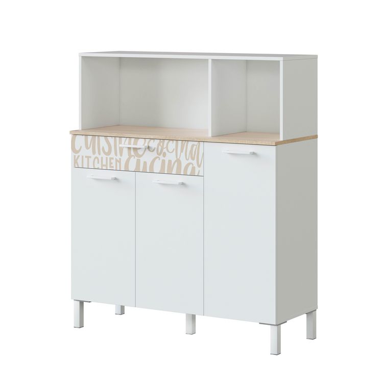La desserte pour cuisine est un meuble compact idéal pour vous apporter du rangement supplémentaire. Ce meuble dispose de tiroirs et placards fermés ainsi qu'une niche pour placer le micro ondes. Autre atout, ce meuble est en plus très joli grâce aux teintes blanc et bois très tendances.