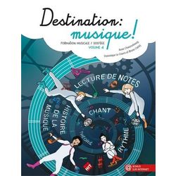 Destination Musique vol. 4 est une méthode de formation musicale pour la 4e année dapprentissage. Support pratique et complet (livre unique de la 4e année), chaque cours tient sur une double-page, incluant des exercices de lecture de notes, de rythmes lus et/ou frappés, une notion théorique, et un chant avec accompagnement piano. Les 1res étapes de louvrage récapitulent les acquis de lannée précédente (présentés dans le volume 3). Tous les quatre cours, une «?escale?» permet de réviser les notions des dernières leçons, ou de découvrir des oeuvres avec les «Commentaires découte». Tout en respectant les programmes et la discipline, cette collection propose une progression adaptée et renouvelle limage de la F. M , joliment illustrée, elle insuffle un univers de poésie et de bonne humeur ! Pour faciliter le travail à la maison, les audio sont librement disponibles sur internet. 90 pages, conçu et fab. en France. Illustrations couleur Valérie Michel. Disponibles : volumes 1, 2, et 3.
