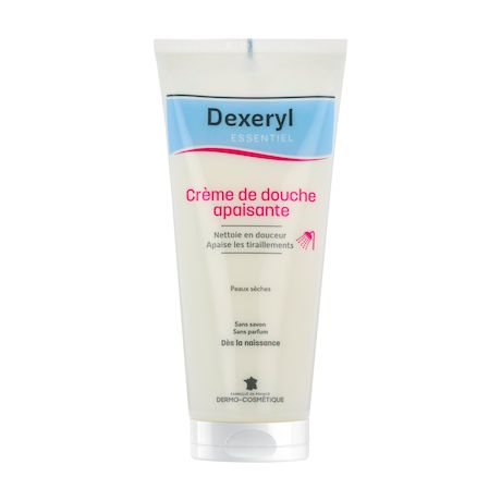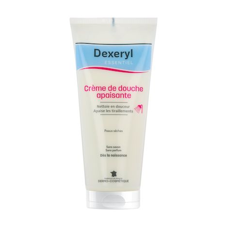 La crème de douche apaisante DEXERYL ESSENTIEL est formulée sans savon et sans parfum pour nettoyer en douceur les peaux sèches de toute la famille (nourrisson, enfant, adulte). Elle apaise les tiraillements, protège la peau du dessèchement et aide à préserver la barrière cutanée. La peau est hydratée durablement. Visage et corps. Ne pique pas les yeux. Formulée pour minimiser les risques de réactions allergiques et testée sous contrôle dermatologique.