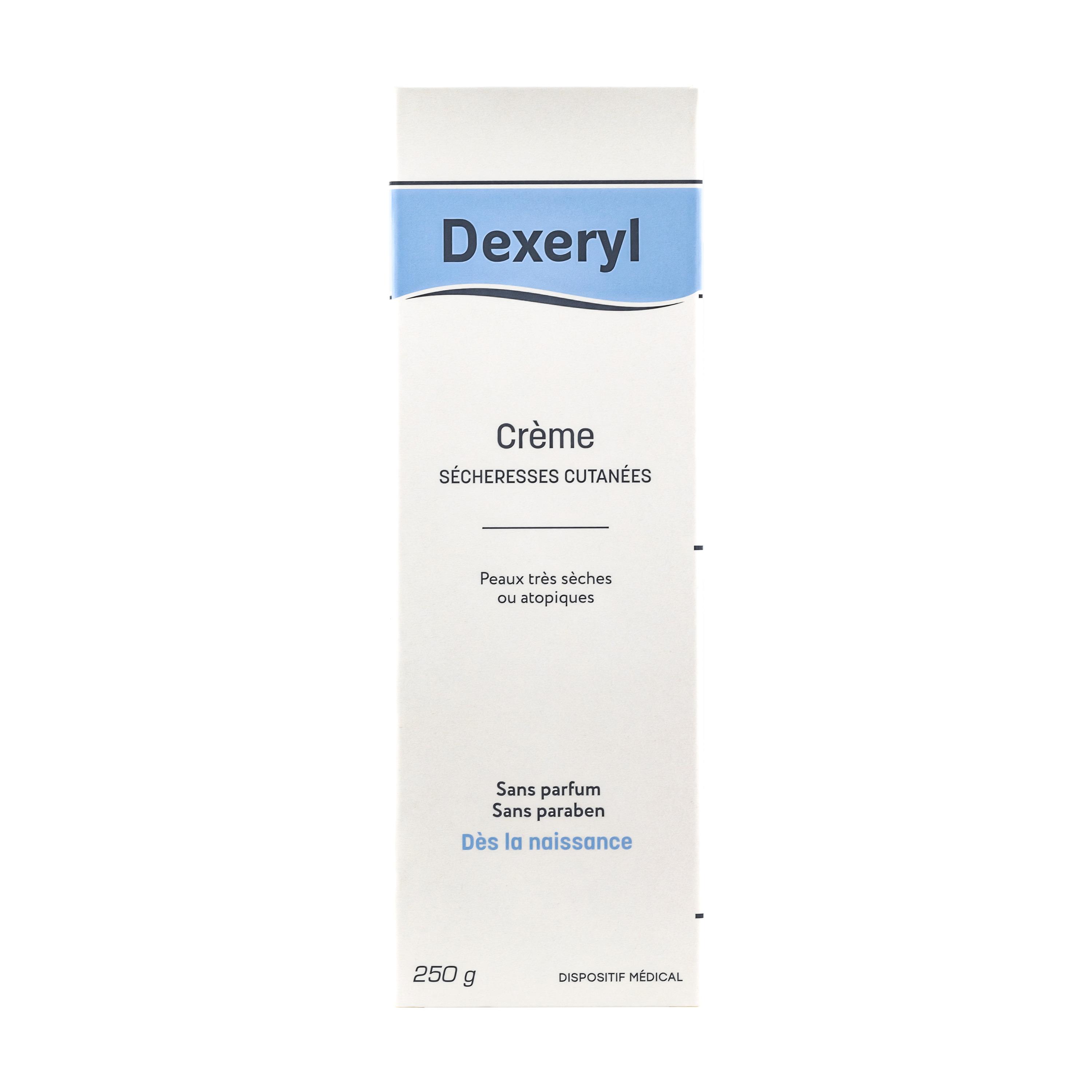 Dexeryl crème, dispositif médical. Dès la naissance. Lire attentivement les instructions sur l'emballage avant utilisation. Demandez conseil à votre pharmacien. Ce dispositif médical est un produit de santé réglementé qui porte, au titre de cette réglementation, le marquage CE. Fabricant : PIERRE FABRE MEDICAL DEVICES, France.