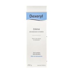 La crème DEXERYL répare et hydrate durablement les peaux sèches ou atopiques, notamment dans le cas de certaines dermatoses [dermatite atopique, ichtyoses, etc...] ou des érythèmes induits par radiothérapie. Sa formule unique traite les symptômes de la peau sèche et crée un film protecteur qui évite la déshydratation et aide à protéger la peau des agressions extérieures. Sans parfum, elle permet de limiter et de prévenir les irritations. Convient à toute la famille, dés la naissance.