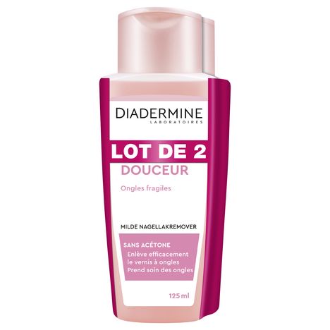 Le Dissolvant Douceur de DIADERMINE retire efficacement le vernis à ongles tout en prenant soin des ongles, même fragiles