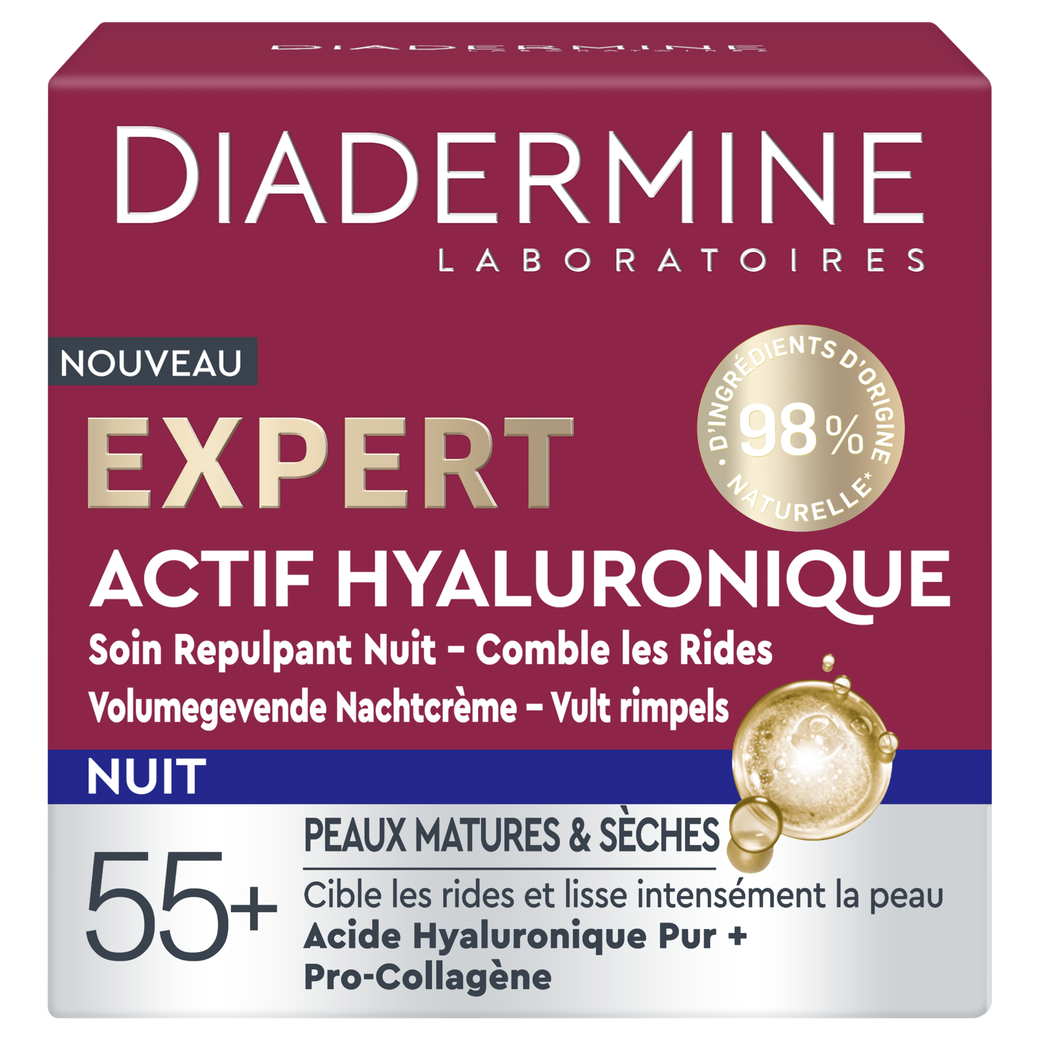 Expert soin repulpant nuit actif hyaluronique peaux matures & sèches