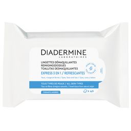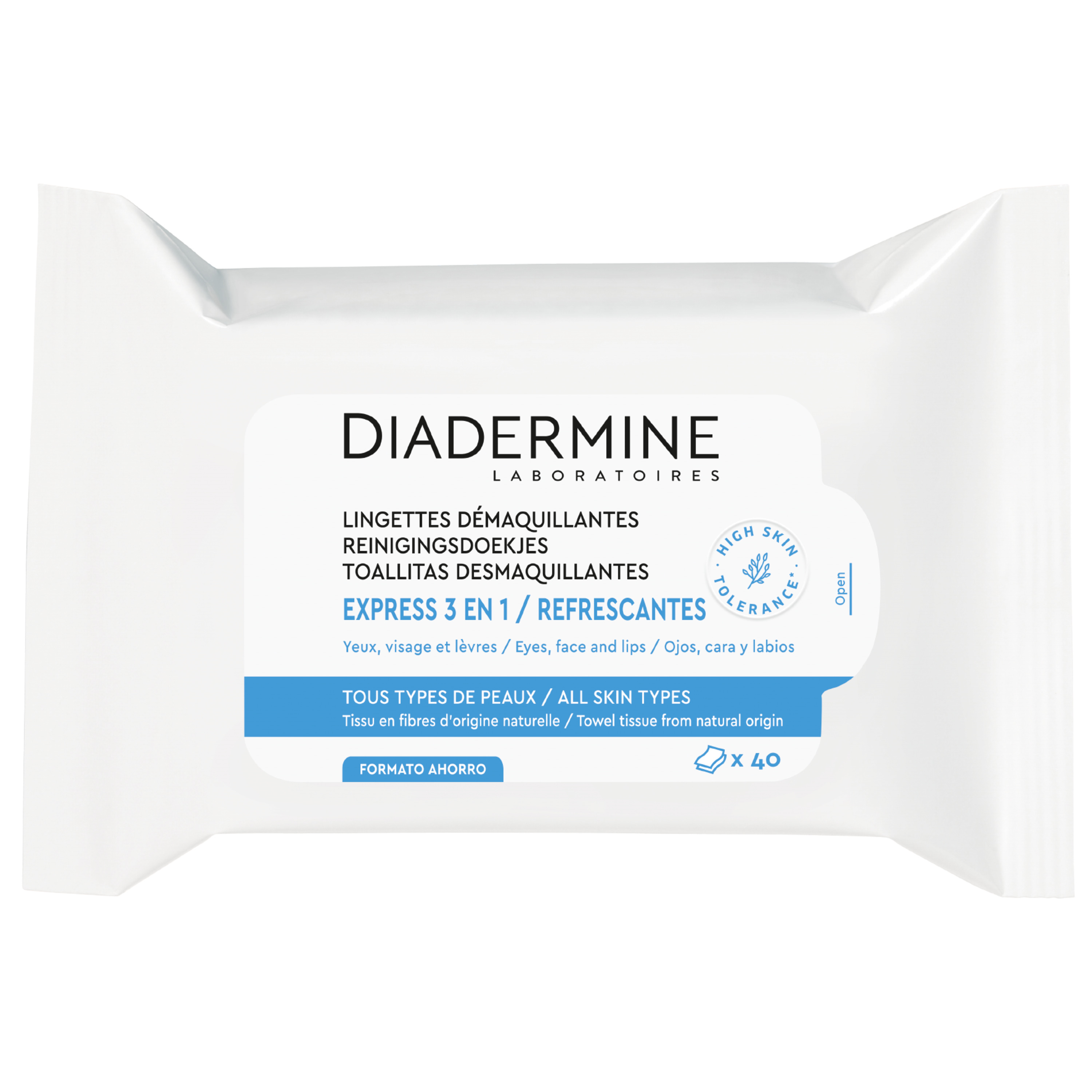 Diadermine Lingettes Démaquillantes Express 3 en 1 démaquillent en douceur le visage, les yeux et les lèvres - en un seul geste! Elles nettoient la peau des impuretés et des résidus de maquillage, même waterproof. Testées sous contrôle dermatologique. Votre peau est parfaitement nettoyée, apaisée et hydratée.