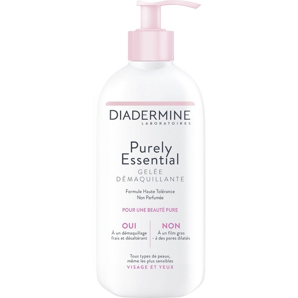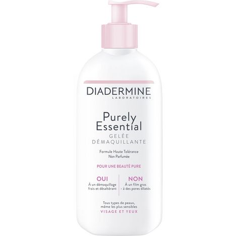 UNE BEAUTÉ PURE Les Laboratoires DIADERMINE ont développé la Gelée Démaquillante Purely Essential pour tous les types de peaux, même les plus sensibles. Sa formule contient tout simplement l’essentiel pour votre peau. Démaquillant