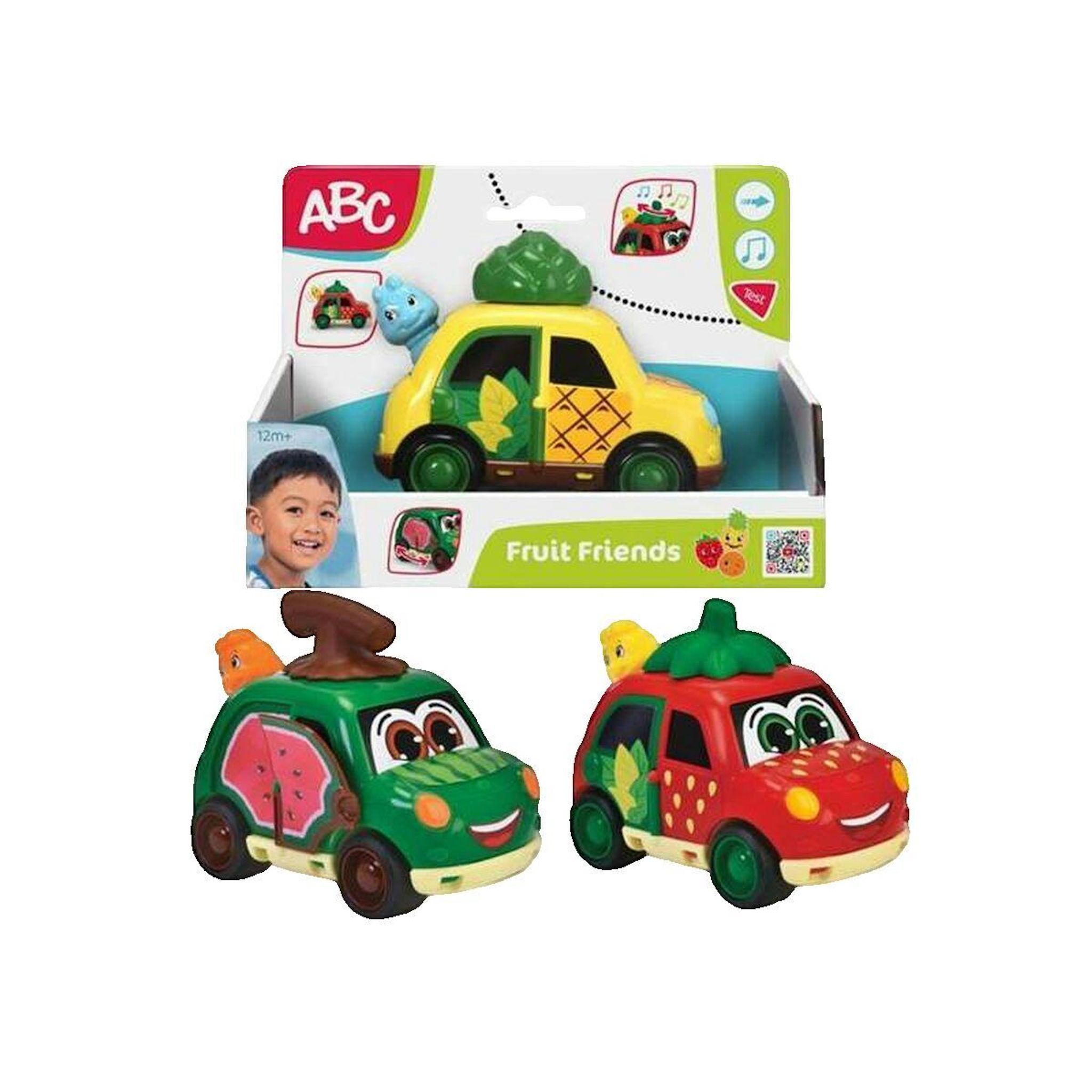 Le véhicule de jouet ABC Fruit Friends de la marque Diamond Football Company est conçu pour les enfants à partir de 12 mois. Ce jouet coloré et interactif mesure environ 12 cm et est fabriqué en plastique de haute qualité, robuste et sûr avec des bords arrondis adaptés aux petites mains. Il comprend