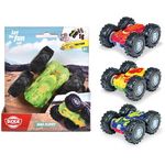 Véhicule à friction de 10 cm pouvant réaliser des fonctions de flips (figures). Véhicule à deux faces. 4 modèles assortis. A partir de 3 ans.