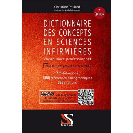 Les professionnels de santé, les cadres, les apprenants, tous sont concernés par les concepts en sciences infirmières afin de crédibiliser une démarche scientifique visant la qualité de la relation soignant-soigné. Ce dictionnaire est un outil indispensable dès le premier semestre en formation infirmière pour construire des Analyses de Pratiques Professionnelles (APP) jusqu'aux projets de recherche (mémoires, revues de littérature, etc.)... Cette 7e édition est enrichie avec des concepts issus des sciences humaines et sociales : Apprentissage du care, authenticité, autonomisation-empowerment, alte inversée, démarche clinique, désinformation, déshumanisation, développement, droit, empathie, environnement capacitant, intégrité scientifique, isolement social, limites de l'empathie, maladies chroniques, mentorat, mésinformation, pair-aidance, politique, rôle, raisonnement clinique infirmier, retrait social, rupture sociale, soins de nursing, soins spirituels, spiritualité. Dico+ est un nouvel outil disponible en ligne qui permet de créer des combinaisons de mots-clés et de découvrir de nouveaux concepts associés en lien avec vos projets de recherche scientifique.