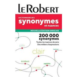 Le plus complet des dictionnaires de synonymes dans un format poche et pratique. Ce dictionnaire de 200 000 mots est LA référence pour s'exprimer avec précision et éviter les répétitions. Une nouvelle édition enrichie plusieurs centaines de nouveaux synonymes. 200 000 synonymes altés par sens : Une personne discrète est réservée, pudique, silencieuse, mais un lieu discret est retiré, isolé, à l'abri des regards... Les nuances entre les mots de sens proches expliquées : On enseigne l'anglais mais on inculque des valeurs... Des milliers d'expressions pour un langage plus imagé : S'enfuir, c'est aussi prendre la tangente, mettre les voiles... Tous les registres de langue, emplois et usages : On peut être stupéfait, interdit (littéraire) ou scié (familier)... Plus de 1 000 mots et expressions des régions de France et de la francophonie. Un guide efficace et pratique pour les élèves, les professionnels de la communication ou de l'écriture et toute personne qui cherche à s'exprimer avec précision et justesse.