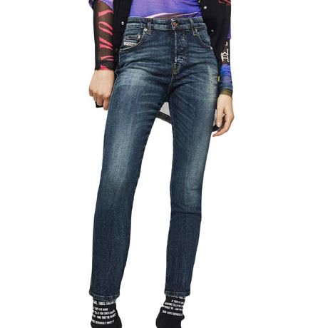 Jean pour femme de la marque incontournable DIESEL.Taille regularCoupe slim/skinnyColoris : Bleu foncé délavé 5 pochesComposition : 98% coton , 2% élasthanne Attention, il s'agit de tailles US