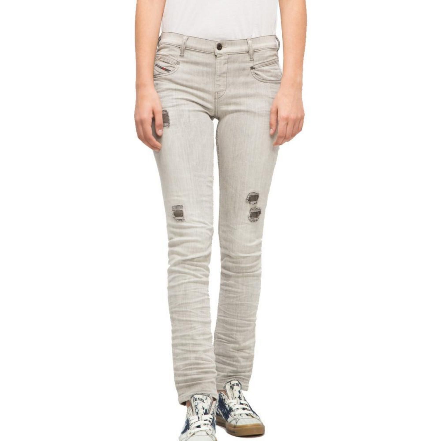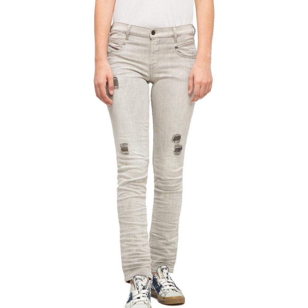 Optez pour le jean pour femme de la marque DIESEL.Coloris : GrisCoupe : Slim Passants pour ceinture5 pochesDéchirures sur les jambes Composition : 98% coton et 2% élasthanneAttention, il s'agit de tailles US