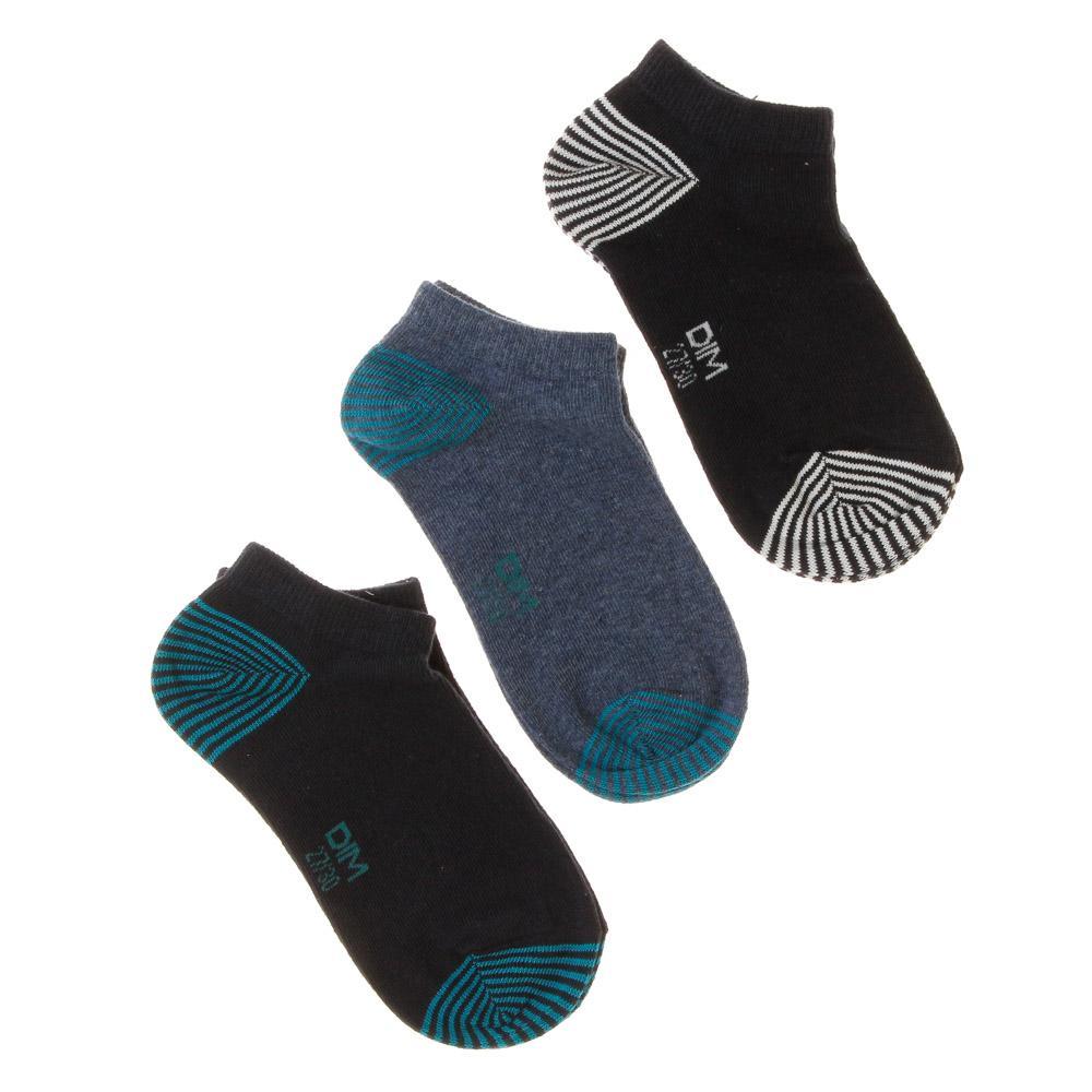 Optez pour ces chaussettes Dim Coloris : Bleu/NoirMotifs imprimésCoupe basseComposition : 64% coton, 34% polyamide, 2% élasthanne