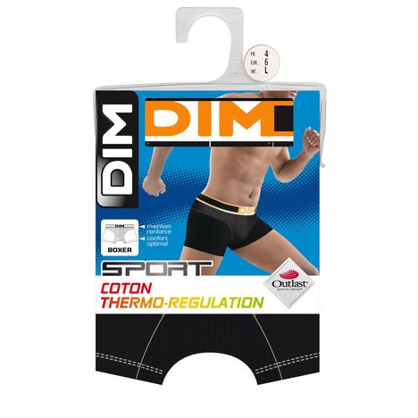 En savoir +Allure sportive et dynamique pour ce boxer homme en coton thermorégulateur Dim Sport. Fibre aérée à l’avant conçue pour libérer la transpiration pendant l’effort. Ce boxer sport procure un excellent maintien et un confort absolu. Ceinture ultra-douce et siglée aux couleurs contrastantes. Coutures résistantes. Doublé devant. Lavable en machine à 40°.