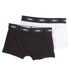 Confort et extrême douceur pour ce boxer garçon en coton stretch signé Dim (lot de 2). Ceinture large siglée. Coutures renforcées. Doublé devant. Lot composé de 2 boxers unis enfant garçon. Lavable en machine.