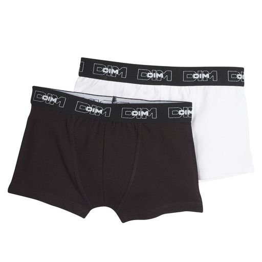 En savoir +Confort et extrême douceur pour ce boxer garçon en coton stretch signé Dim (lot de 2). Ceinture large siglée. Coutures renforcées. Doublé devant. Lot composé de 2 boxers unis enfant garçon. Lavable en machine.