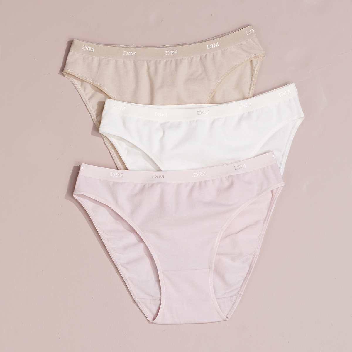 La qualité d'un sous-vêtement Dim pour un prix tout petit avec ce lot de 3 culottes femme unies, que vous adopterez très rapidement ! Ceinture souple et douce à la tenue exemplaire. Bords francs. Fond doublé en coton pour plus de confort. Maille stretch au port agréable. Composition : 95% coton et 5